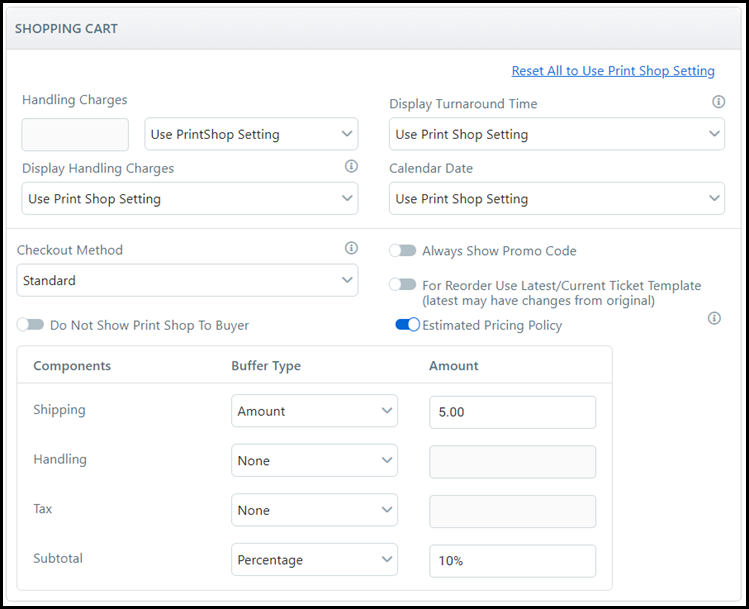 The Order Return Policy Settings section is where you enable and configure the return policy for MarketDirect Fulfillment products. Settings are enabled and configured using a toggle switch and field.