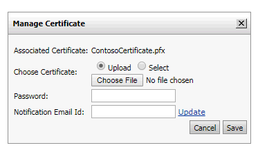 ● Specify a Notification Email Id to which notifications will be sent when a certificate has expired or is about to expire.