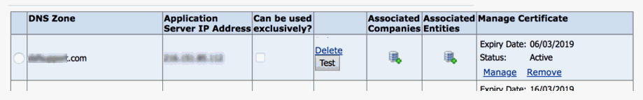 ● Upload the certificate for each DNS Zone. Once the status is Active, it is ready to be used.