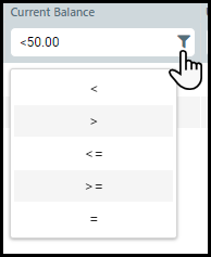 can be filtered by entering a numeric value, clicking the Filter icon,