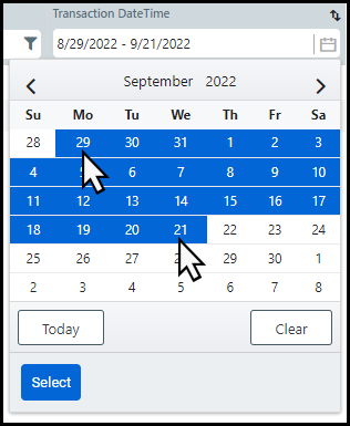 The Name, Spending Account Type, and Transaction Type columns can be filtered by choosing the appropriate name or type from the column drop-down list.