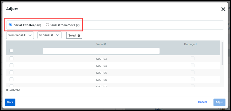 2 Enter the serial number into the Serial # search bar and click the appropriate check-box.