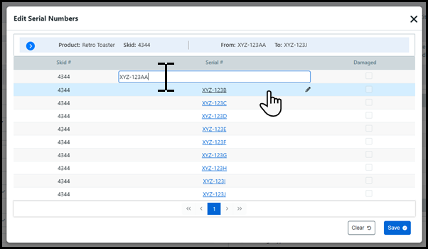 9 To manually enter a serial number, select the row in the Serial # column and enter the custom serial number.
