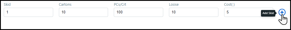 2 Define the receipt of inventory and click the Add Skid button.