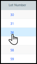 4 Click the appropriate row to open the Lot Management page for that product.