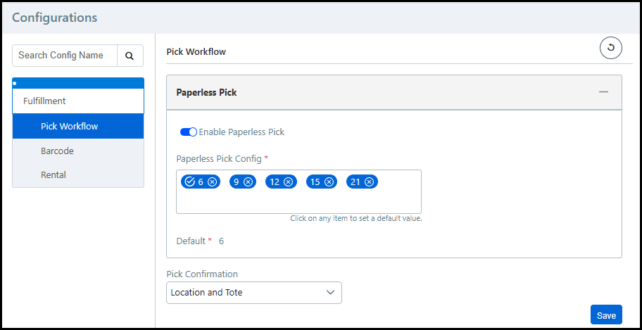 ● Enable Paperless Pick: Select the toggle to enable the paperless pick workflow.
