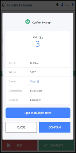 the pick, then the tote number will be available in the Confirm