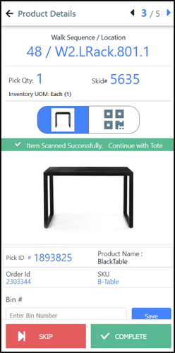 ● Re-scan the barcodes of each item to confirm the pick.