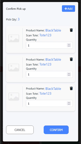 ● Enter the Quantity of the item placed in each tote.