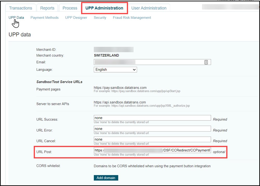 ● IP addresses allowed to call Webhook URL—(For CardConnect and DataTrans only): This is the IP address from which MDSF gets the response from CardConnect or DataTrans. You need not change the default value for this field unless the IP changes and you need to update it.