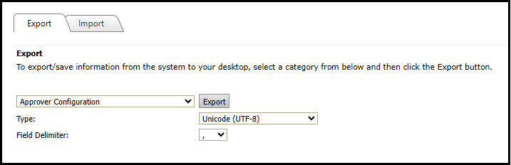 the Export tab, select Approver Configuration and then
