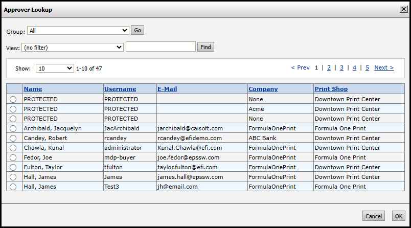 ● Approver: Click Lookup and select the approver from the list of users in the system.