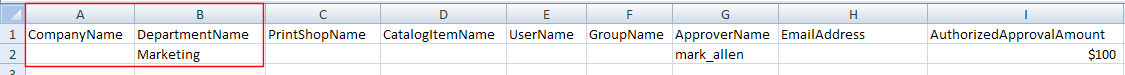 This method is a potentially faster way to get the work done than the user interface (e.g., if you prefer to work with a large number of approval rules in CSV format). Using this method, you will download a template, populate it with your data, and then import it to MarketDirect StoreFront on the Import page. You can then manage the approvals on the Approvals page (accessible from the Manage Approval Settings link on the Administration Home page).