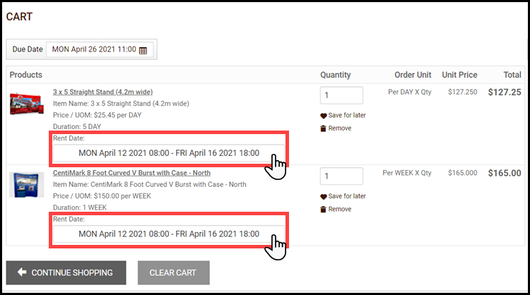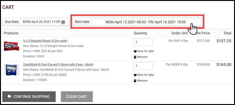 If the Event based calendar setting is enabled, then the buyer will choose a rental date and time for all Rental products in their shopping cart using the same calendar.