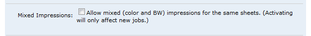 ● Mixed (Color and BW) Impressions—to enable mixed mode printing (i.e., color on one side of a sheet and black-and-white on the other).