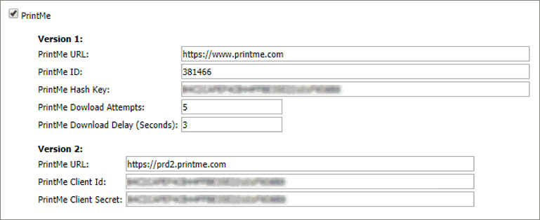 ● PrintMe configuration settings are pre-populated by default. Do not change these values unless directed to do so (e.g., by support).