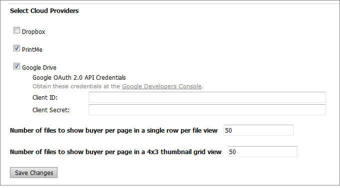 On the Basic Settings tab, scroll down to the Select Cloud Providers section and in the Client ID and Client Secret fields for Google Drive: