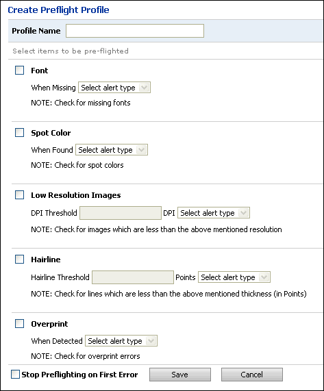 1 On the Create Preflight Profile page type a Profile Name for the profile.