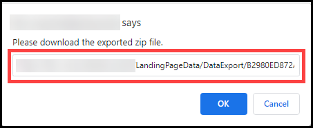 3 Copy the URL from the Please download the exported zip file pop-up window.