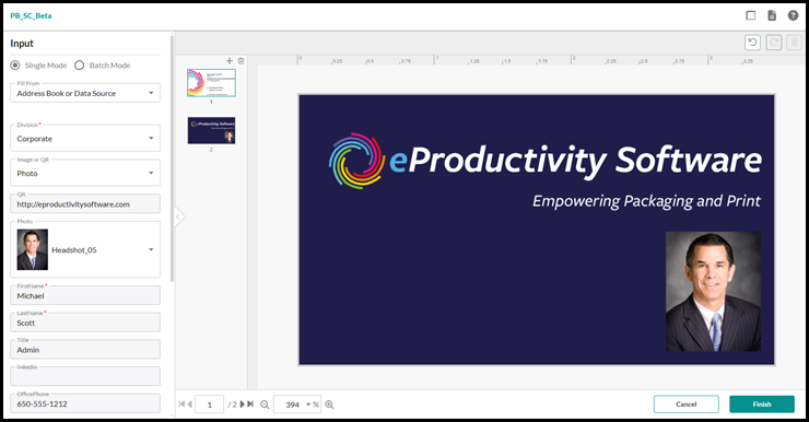 ● Show Address Book: Select this option to expose the address book so users can map address book fields to fields in the SmartCanvas template.