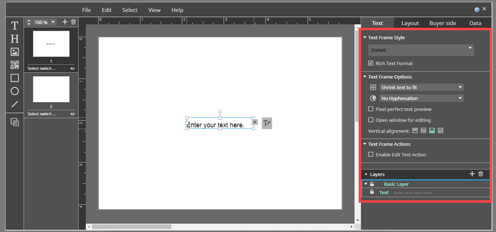● Check Batch Record Jobs box to make the field visible to buyers ordering a batch (multiple record) SmartCanvas product on the storefront and enable buyers to enter data into the editable field.