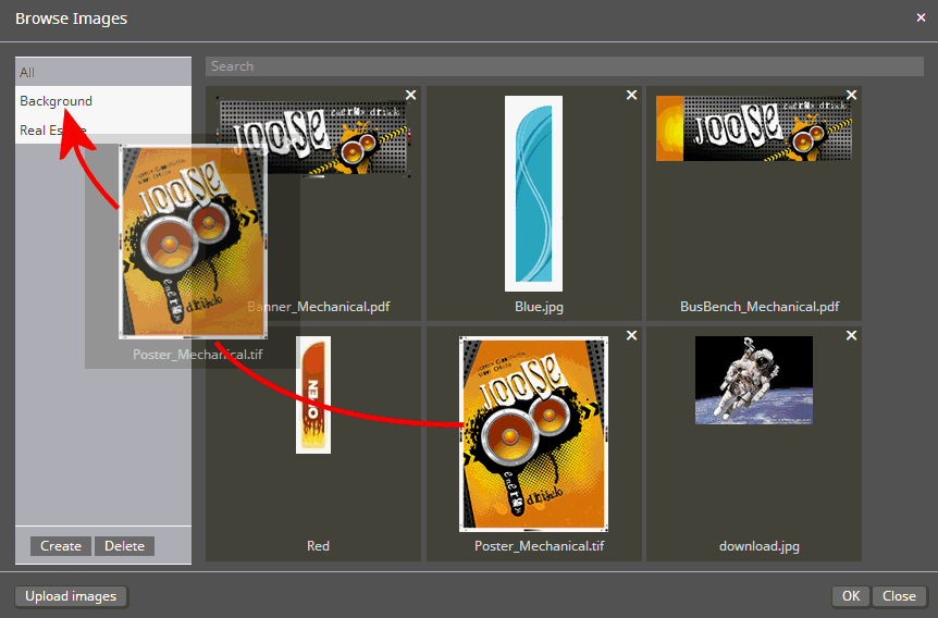 3 Choose Upload zip file to upload an exported SmartCanvas template zip file.
