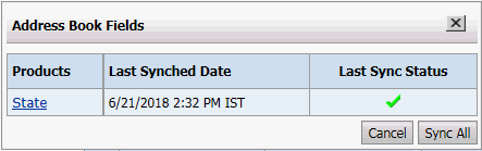When you synchronize products associated with SmartCanvas templates, the changes you have made to the template (e.g., a change to a web form field associated with an address book field) will be applied across all products associated with the template.