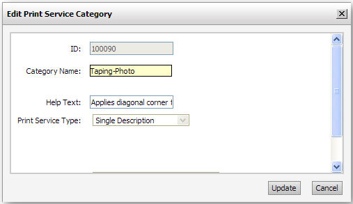 ● Category Name: Enter a name for the new print service category.