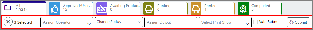 ● bulk processing tools to perform common tasks on all selected jobs at once: