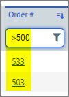 ● For example, >450 will show all Product ID values greater than 450.