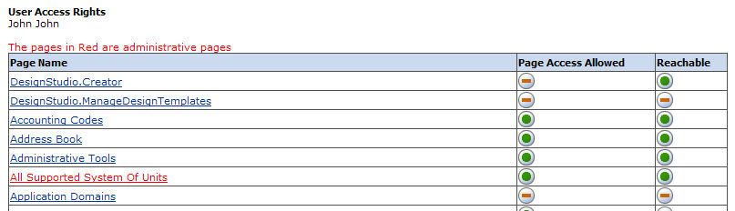 View a user’s page access rights